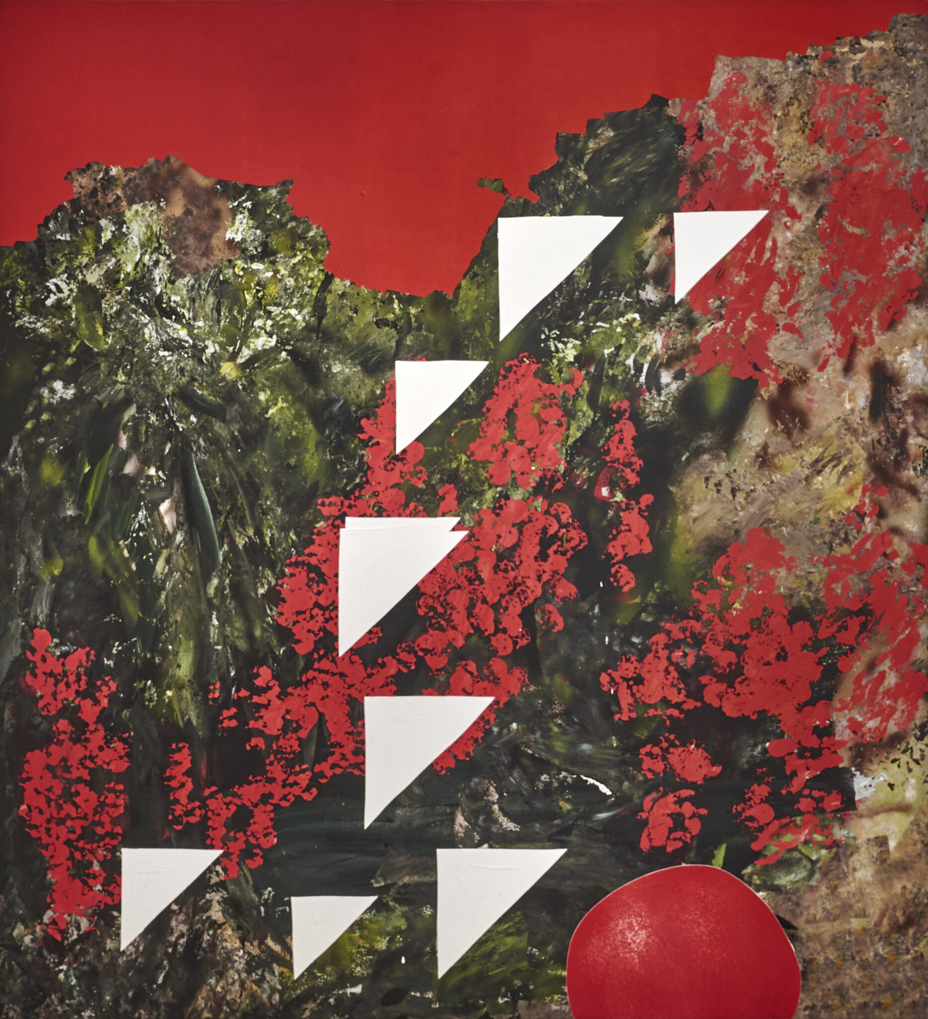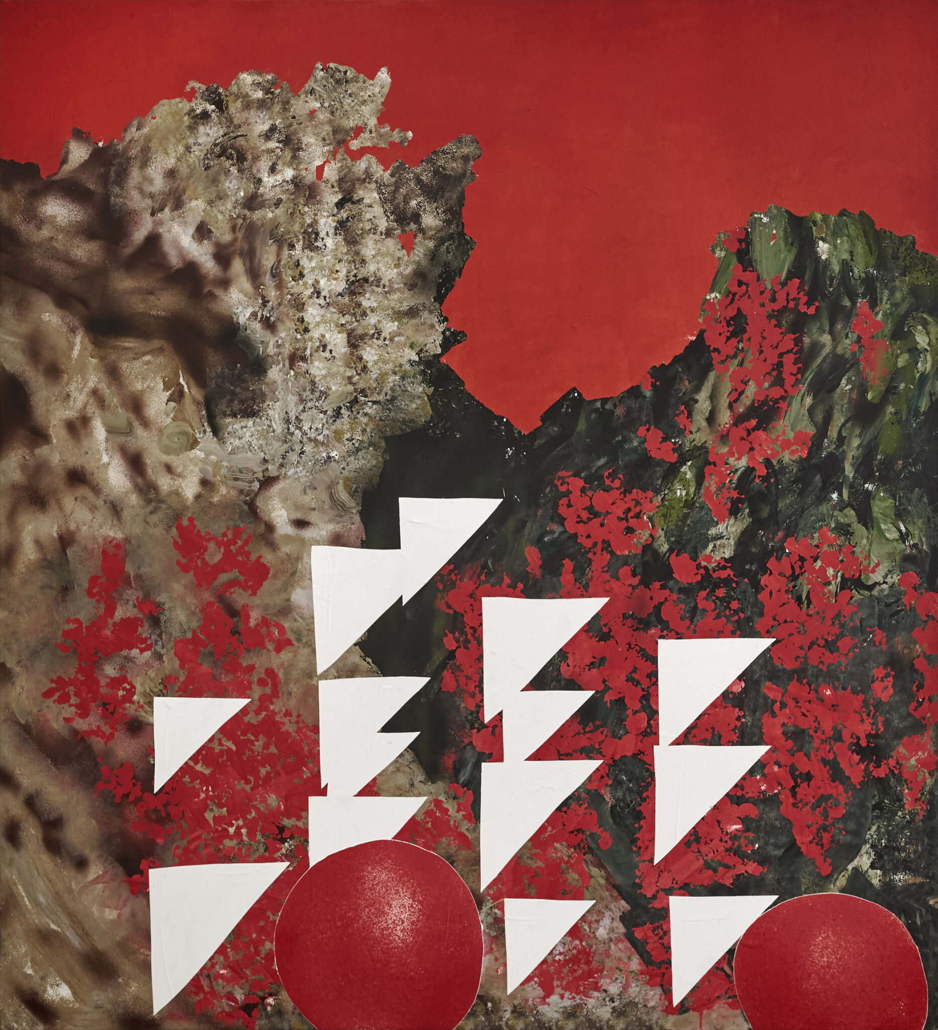 Hou Zichao (b.1988, China) explores his act of painting as a medium between society and nature, which is transformed into the landscape of artificial behavior and human behaviors.