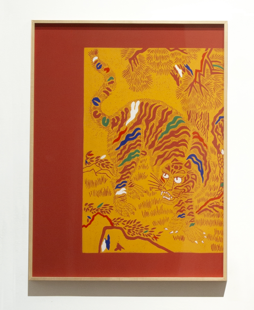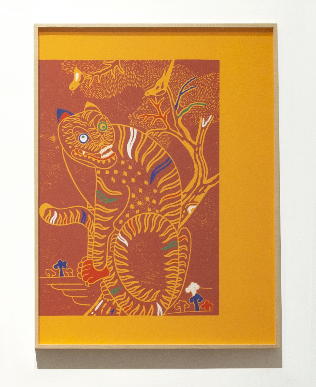 Kour Pour (b.1987, UK)explores visual aesthetics produced through cultural exchange. His paintings question notions of originality and shifting relationships between appearance and identity. He is best known for paintings based on Persian carpets, featuring Portuguese sailors trailing the Silk Road, Chinese dragons and flying horses, Indian warriors and Buddha-like figures, floral patterns reminiscent of William Morris and the Arts and Crafts movement. For each work, the image of a specific rug is silkscreened onto a canvas that has been primed with several layers of tinted gesso. Pour's use of silkscreen further removes his paintings from the rugs they reference: from the tangible work of laborious weavers, they are turned into flat images. Yet, Pour's paintings are anything but flat. The gesso he uses as primer is applied onto the canvas in horizontal and vertical strokes with a broom stick, to recreate the warp and weft of woven rugs. Once the canvas has been silkscreened, the details of each composition are carefully hand painted in a palette of neon hues that bring to mind the de rigoeur gear on the beaches of Los Angeles, where he lives and works. After months of priming, silkscreening and painting, Pour uses a circular sander to erase areas of the paintings. He then returns to them in order to repaint what has been lost, wherever possible. In the resulting paintings, he has obliterated parts of the narrative while highlighting others, as if editing the history he has endeavored to tell.